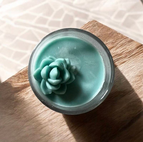 White base with aqua-blue floral tops, little succulents or lotus blossoms floating on water. 1pcs